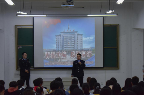 曹安琦警官向新生介绍了电信网路诈骗的基本含义、分析了近年来电信网络诈骗案件的高发趋势,讲解了常见电信网络诈骗犯罪类型和具体案例,告诫同学们在面对电信网络诈骗时如何预防和应对。他通过生动形象的讲解和丰富的视频资料展示,很好的吸引了师生的注意力,现场掌声不断。曹警官提醒同学们对于网络电信诈骗要做到“不听、不信、不点、不说、不转,信息要核实,密码要设牢,及时报案”。他希望通过此次专题讲座,能让同学们学有所获,提高同学们的自我防范意识和能力。