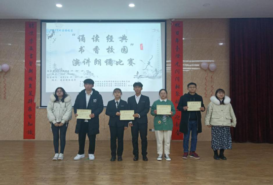 此次决赛分为两组,分别为朗诵组和演讲组。经过初赛的选拔淘汰后,共有16选手进入此次决赛,其中朗诵组有11名选手,演讲组有5名。经过激烈的角逐,最终由朗诵组的钱楷同学和演讲组的赵骏哲同学分获此次决赛的一等奖,朗诵组的宁金磊、张文静同学和演讲组的张钊同学分获二等奖,朗诵组的赵娜娜、杨煜睿同学和演讲组的李乐乐、雷雨洁同学分获三等奖。选手们优异的表现,赢得了满堂喝彩。