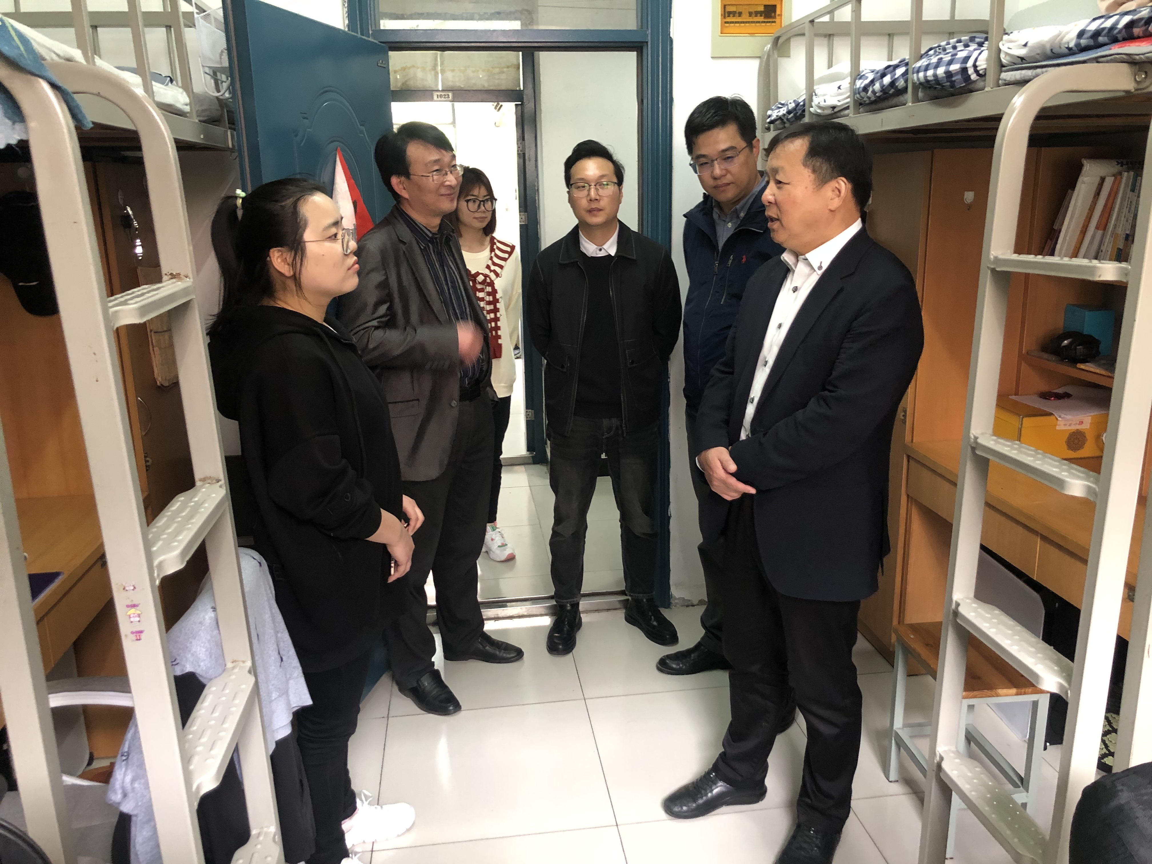 侯进元等一行随机走访了郑蒲港校区相关学生宿舍16间,涉及了校区4个学院、2个年级。调研过程中认真察看了学生宿舍的卫生、安全及生活情况,围绕宿舍卫生管理、宿舍生活等方面,与所在专业辅导员、学生进行了亲切交流。调研过程中也发现了一些物品摆放、卫生死角等问题,强调学生管理工作要始终坚持以学生为中心,落实立德树人根本任务,强调全员全方位育人意识,培养学生劳动观念、集体主义观念,同时辅导员要及时了解学生需求,正确引导学生,当好领路人,加强学生综合素质教育,及时发现问题、解决问题,创造良好的宿舍生活环境。