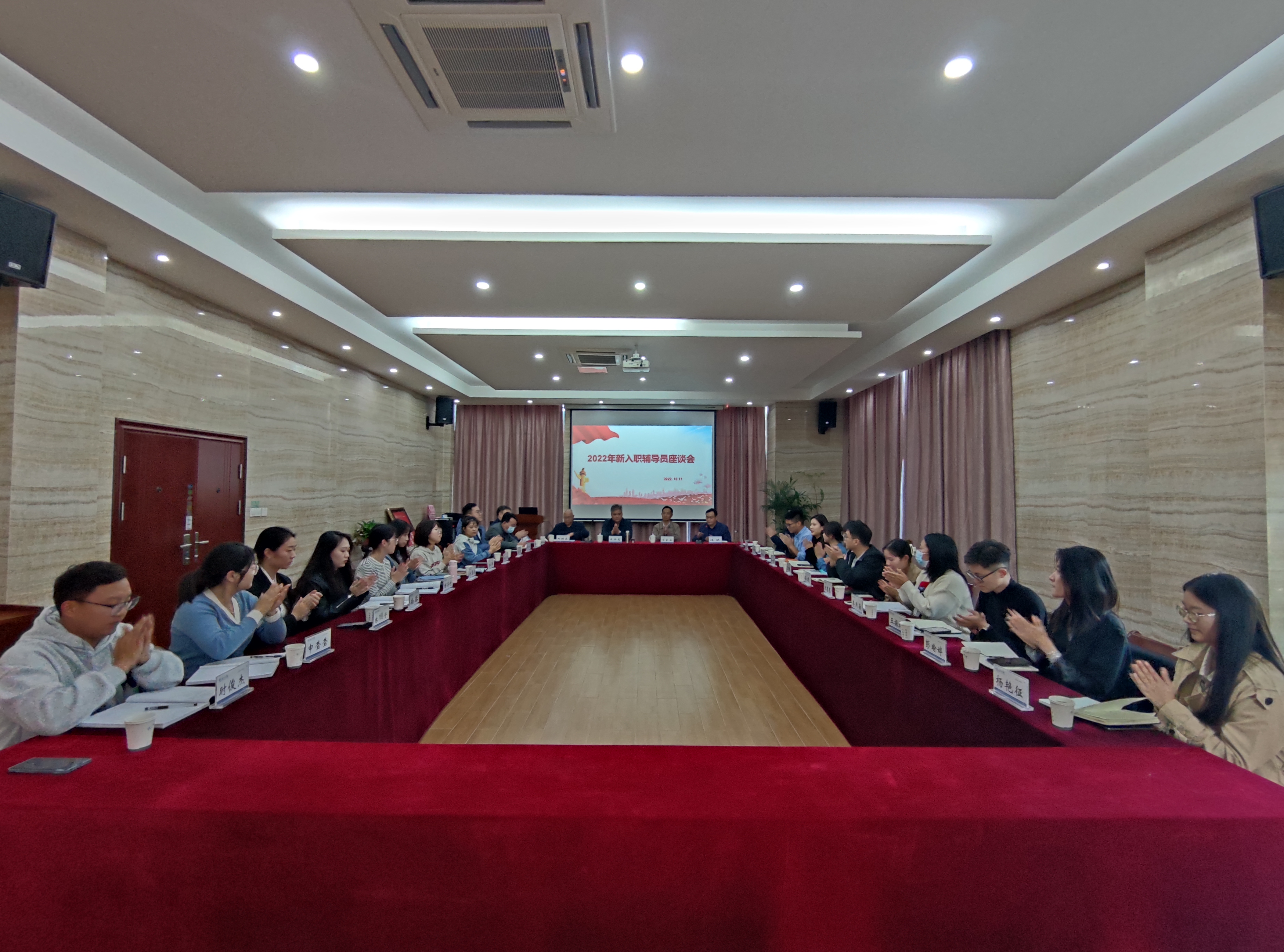 首先在座谈会上,新入职辅导员轮流进行了简短的自我介绍。随后,辅导员代表就新生入学教育、学生突发情况处理、心理特殊人群关注、和辅导员团队合作等方面进行了工作汇报,并分享了辅导员工作体会。
