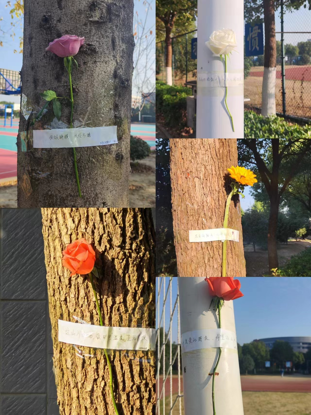 “花会沿路盛开,以后的路也是”、“爱人如养花,最好的花匠是自己”。同学们内心的浪漫与祝福,伴随着花香充斥着整个校园。在这寒意渐浓的初冬,大学生传媒中心为同学们准备了不经意的小惊喜,同时也将浪漫的人生态度献给了大家。