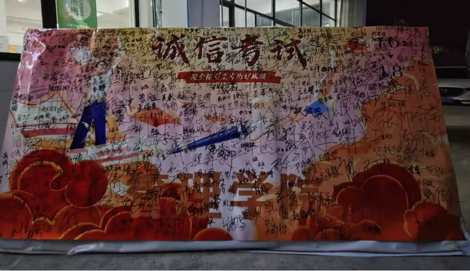 为了进一步提高同学们的诚信意识,营造良好的考试氛围,1月6日至8日,管理学院学习生活部在校区食堂一楼门口举办了诚信考试签名活动。本次活动由学习生活部承办,活动旨在倡导同学们树立诚信考试的理念,自觉抵制作弊行为,为即将到来的期末考试创造一个公平、公正、诚信的考试环境。